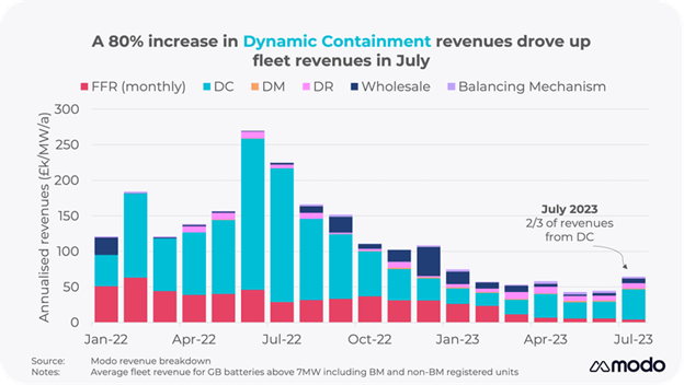 圖1動(dòng)態(tài)遏制收入增長(zhǎng)80%,推動(dòng)了英國(guó)運(yùn)營(yíng)的電池儲(chǔ)能系統(tǒng)7月的收入增長(zhǎng)