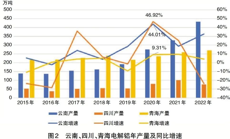 高耗能產(chǎn)業(yè)“西遷”,帶動(dòng)負(fù)荷電量大幅增長?!半p碳”目標(biāo)下碳排放成為產(chǎn)業(yè)發(fā)展的重要制約因素。新增可再生能源和原料用能不納入能耗總量控制、碳交易市場、歐盟碳關(guān)稅等政策,為西部省份發(fā)揮可再生能源優(yōu)勢發(fā)展經(jīng)濟(jì)和東部高耗能企業(yè)利用可再生能源布局產(chǎn)能創(chuàng)造了互利共贏的合作機(jī)會(huì)?!笆濉焙笃冢颇?、四川、青海等省以優(yōu)惠電價(jià)政策,大規(guī)模引進(jìn)了電解鋁、晶硅、鹽湖產(chǎn)業(yè)、數(shù)據(jù)中心等高耗能企業(yè),三省2020年電解鋁產(chǎn)量增速分別達(dá)44%、47%和9%(圖2)。云南從山東、河南、陜西、甘肅等省份承接了超500萬噸電解鋁產(chǎn)能,電解鋁用電量占工業(yè)用電量比重從2019年的20%上升到2022年的33%。青海2022年單晶硅、多晶硅產(chǎn)量分別同比增長6倍和1.6倍(圖3)。高耗能行業(yè)帶動(dòng)了用電量超預(yù)期增長的同時(shí),也抬高了負(fù)荷尖峰,加之工業(yè)負(fù)荷調(diào)節(jié)潛力不足,加劇了電力供需矛盾。