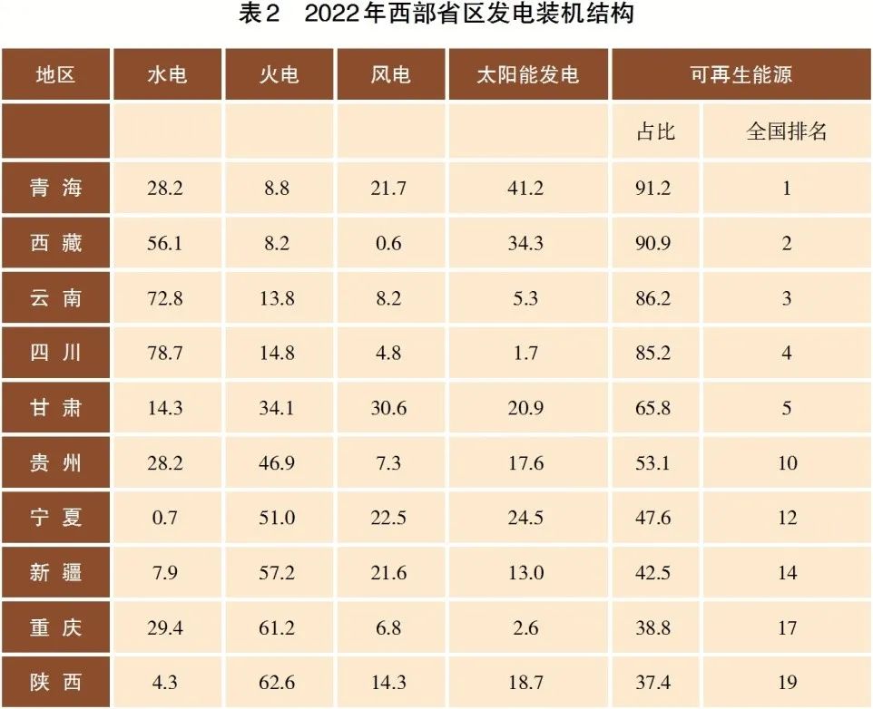 可再生能源裝機(jī)占比高,受氣候影響大。我國西部地區(qū)憑借其豐富的水和風(fēng)光資源,可再生能源發(fā)電裝機(jī)占比不斷攀升,青海、西藏、云南、四川、甘肅等省區(qū)可再生能源已位居發(fā)電裝機(jī)主體地位,占比居全國前五(表2)。西南地區(qū)是世界上規(guī)模最大的水電基地,四川、云南的水電裝機(jī)占比分別達(dá)到78.7%、72.8%,但具有年調(diào)節(jié)及以上能力的水電站比重少,跨季調(diào)節(jié)能力差,電力供需豐枯、峰谷矛盾長期存在。四川全網(wǎng)三分之二為無調(diào)節(jié)能力的徑流式水電,發(fā)電能力受來水制約,在遭遇如2022年“最高溫度、最少來水、最長時(shí)間”的極端氣候時(shí)易出現(xiàn)電力電量缺口,電源“自?!蹦芰Σ蛔?。西北地區(qū)新能源裝機(jī)規(guī)模已超過煤電,成為地區(qū)第一大電源,新能源反調(diào)峰特性突出,日內(nèi)新能源波動(dòng)量由2018年的2654萬千瓦上升至2022年的6096萬千瓦,是負(fù)荷日峰谷差的3倍,光伏占比不斷提高,“夏豐冬枯、日盈夜虧”的情況不斷加劇,負(fù)荷高峰時(shí)期電力供需緊張。