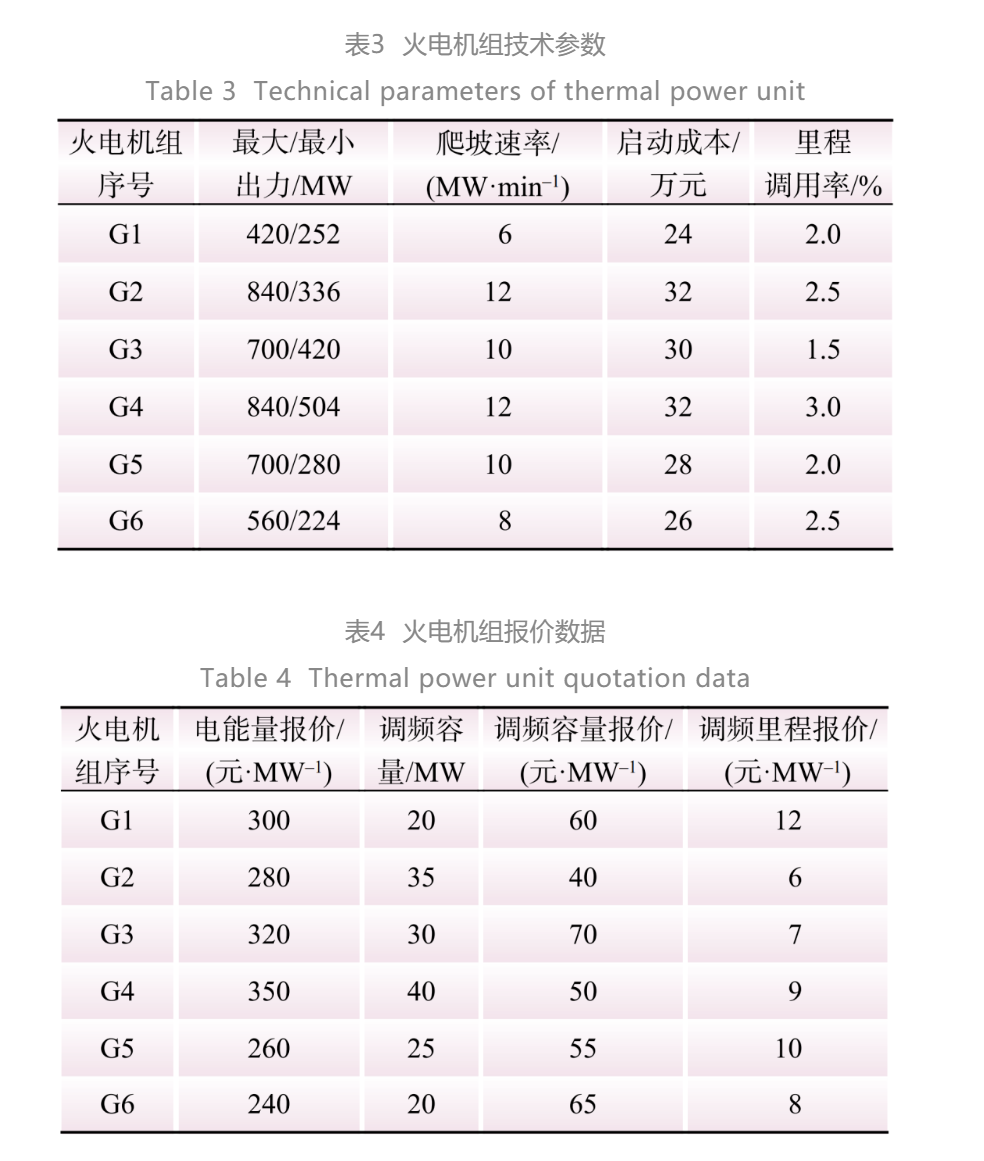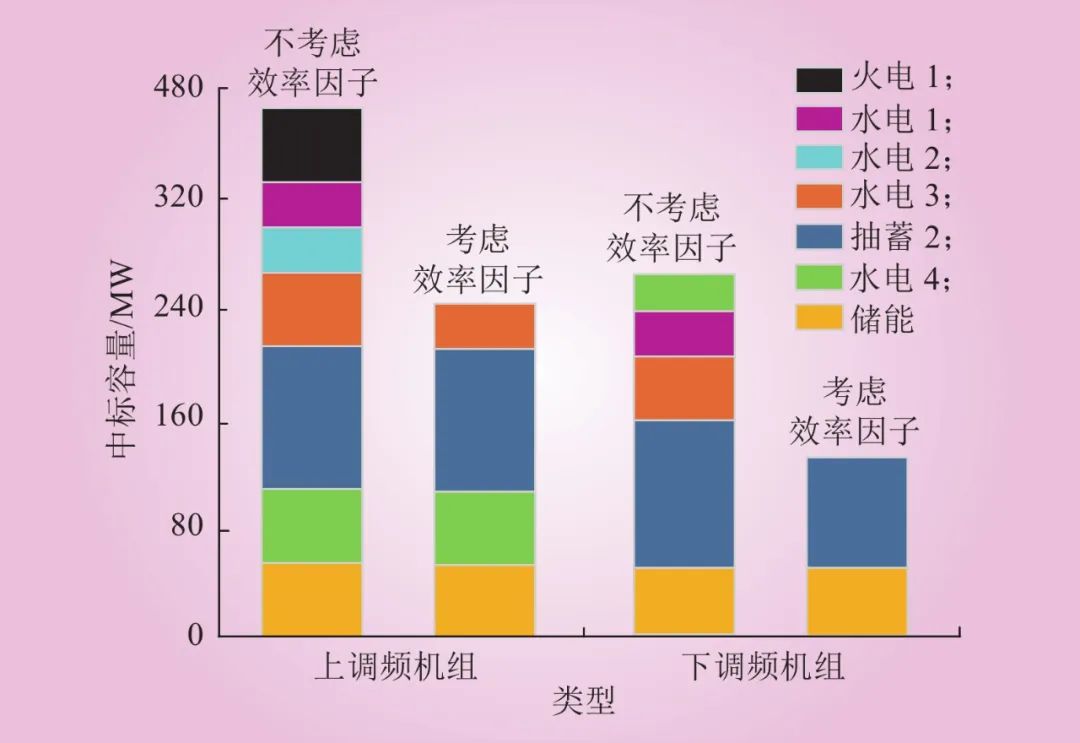 本文選取火電機(jī)組為傳統(tǒng)調(diào)頻資源,具有響應(yīng)幅度大、延續(xù)時(shí)間長(zhǎng)特性;選取儲(chǔ)能為快速調(diào)頻資源,包括抽水蓄能、水電等,具有響應(yīng)變化幅度小、周期短、快速響應(yīng)特性。將2個(gè)交易品種面向調(diào)頻資源開放,實(shí)現(xiàn)以下優(yōu)勢(shì)。1)減少機(jī)組頻繁調(diào)節(jié)出力造成的壽命損失,儲(chǔ)能快速響應(yīng)調(diào)頻信號(hào),解決調(diào)頻電量不足問(wèn)題。2)較佳的調(diào)頻交易品種能以較小調(diào)頻成本實(shí)現(xiàn)最佳的調(diào)頻效果。3)引入效率因子后系統(tǒng)調(diào)頻容量需求減少,提升調(diào)頻效率,出清價(jià)格有明顯下降,且退出調(diào)頻輔助市場(chǎng)的資源還可運(yùn)用在其他市場(chǎng),實(shí)現(xiàn)資源節(jié)約。