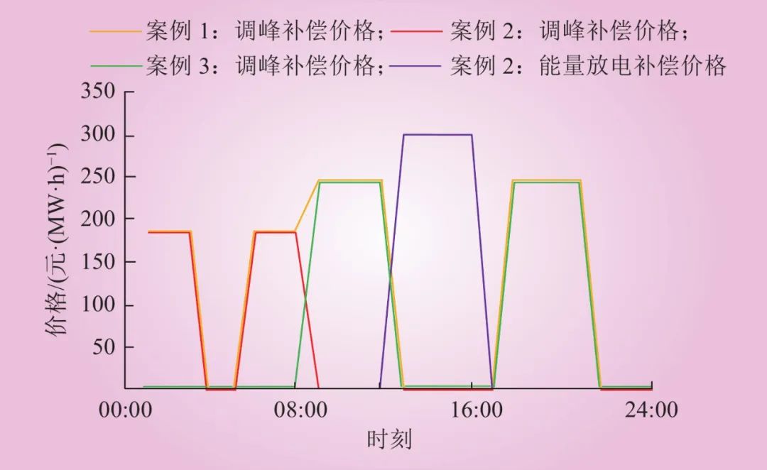 圖9 案例1~3中儲(chǔ)能補(bǔ)償價(jià)格
