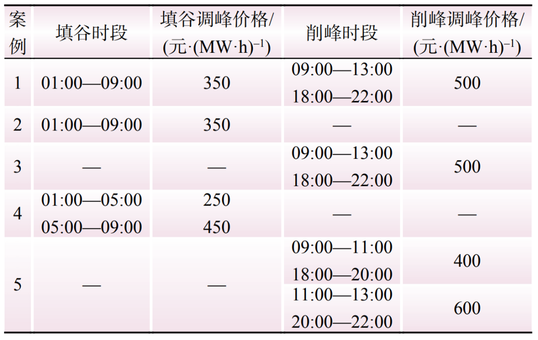 表9 調(diào)峰市場(chǎng)中的不同案例