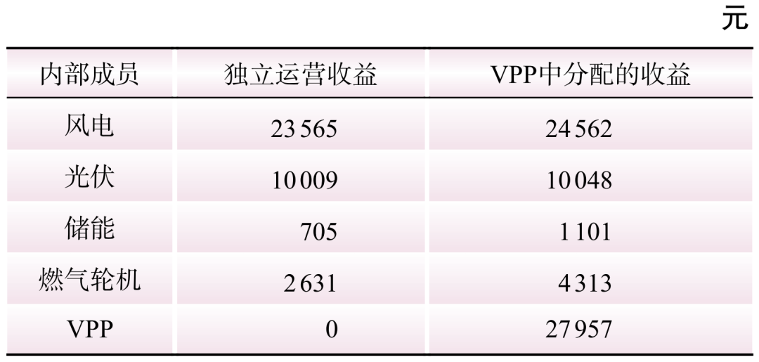 儲(chǔ)能收益由聚合DER后的VPP分配,收益如表8所示,可知VPP聚合分配后儲(chǔ)能效益優(yōu)于獨(dú)立運(yùn)營(yíng)收益。