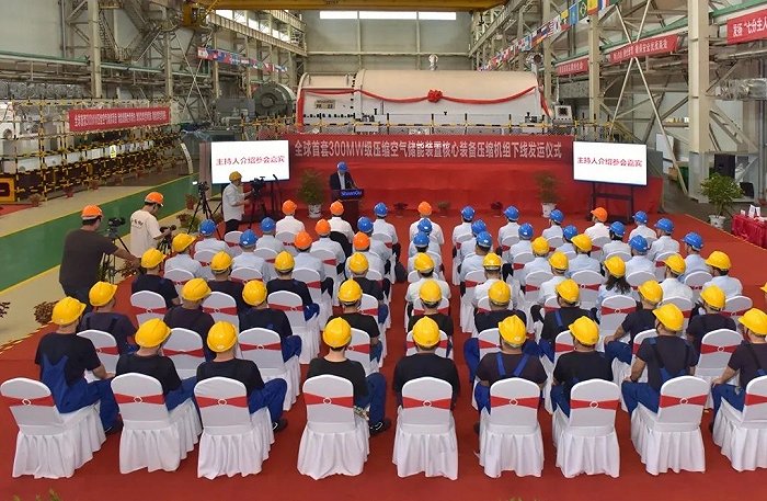 9月20日上午,全球首套非補燃型300MW級壓縮空氣儲能項目核心裝備壓縮機組下線發(fā)運儀式在陜鼓集團臨潼制造園區(qū)總裝車間舉行。該項目是陜鼓與中能建數(shù)字科技集團有限公司(以下簡稱“能建數(shù)科”)強強合作,以能建數(shù)科湖北應城300MW壓縮空氣儲能項目為依托,在世界級壓縮空氣儲能領域的一次全新探索。項目建成后,將助力非補燃壓縮空氣儲能領域實現(xiàn)儲能規(guī)模世界第一、單機功率世界第一、轉換效率世界第一。