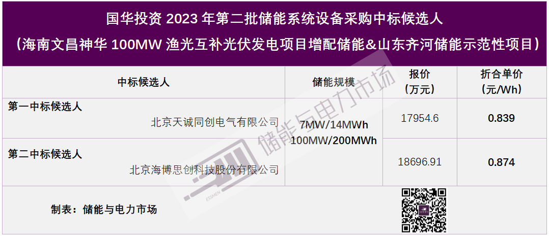 北京海博思創(chuàng)科技股份有限公司以總報價18696.91萬元,折合單價0.874元/Wh,成為第二中標候選人。