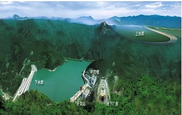 抽水蓄能電站因?yàn)槠涮囟ǖ某樗畘發(fā)電工作模式,在利用電力負(fù)荷低谷時(shí)的電能、將水從下水庫抽至上水庫以儲(chǔ)存能量,在電力負(fù)荷高峰期時(shí)、通過上水庫放水至下水庫獲得電能,因此必須具有上、下兩個(gè)水庫。