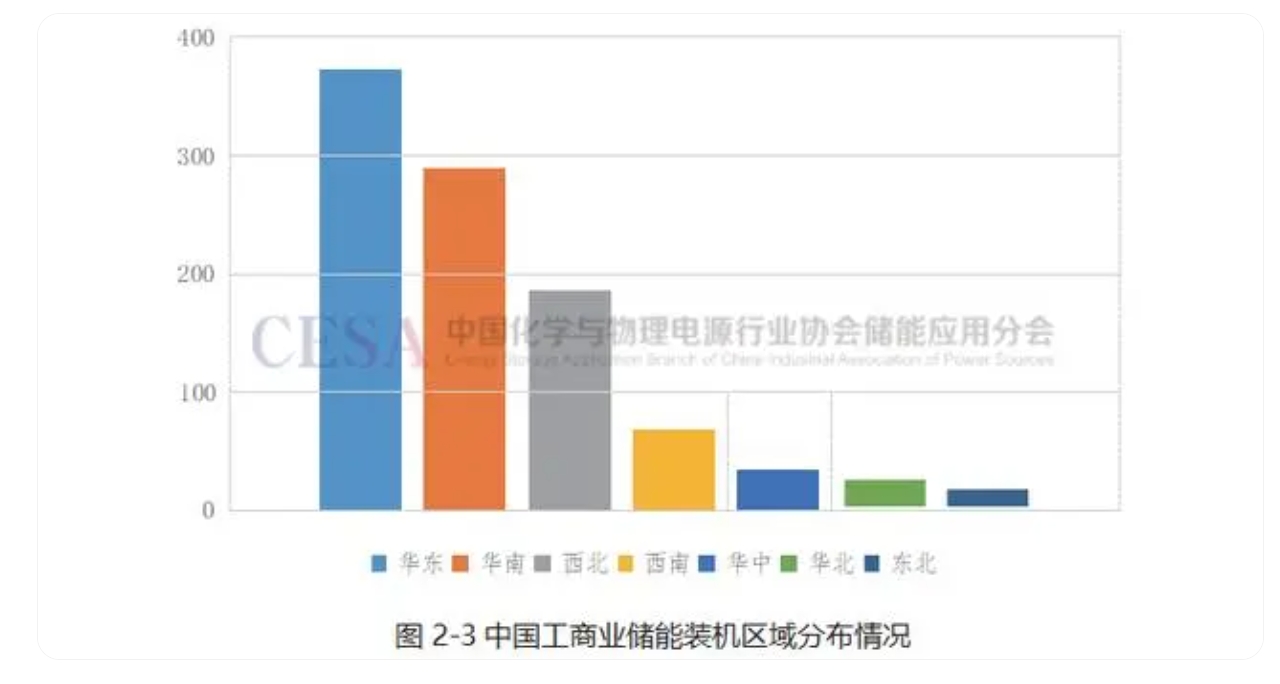 工商業(yè)儲(chǔ)能市場(chǎng),全球看中國(guó)、美國(guó)、德國(guó)、日本,四個(gè)國(guó)家占了全球裝機(jī)總量的79%,而垂直到中國(guó)市場(chǎng),華東、華南則是市場(chǎng)集中的兩個(gè)重鎮(zhèn)。白皮書數(shù)據(jù)顯示,2022年浙江、江蘇所在的華東區(qū)域工商業(yè)儲(chǔ)能累計(jì)投運(yùn)規(guī)模達(dá)到373MW,占全國(guó)工商業(yè)總裝機(jī)功率的37.8%。