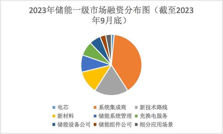 《中國企業(yè)家》對2023年儲能一級市場投融資的不完全統(tǒng)計顯示,近百起融資案例涉及66家企業(yè),其中除了海辰儲能一家電芯公司,主業(yè)為儲能系統(tǒng)集成的企業(yè)數(shù)量最多,為26家;新技術(shù)路線——鈉電、液流等領(lǐng)域的有12家;另外新材料領(lǐng)域的公司有8家,其余的十幾家公司散布在儲能周邊——儲能系統(tǒng)管理有6家,主營充換電服務(wù)的有5家,設(shè)備公司有4家,組件有2家,還有2家公司面向儲能在細(xì)分場景的應(yīng)用。
