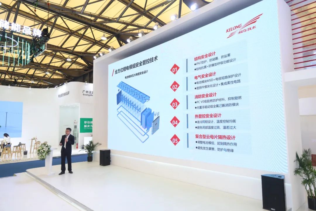 科華數(shù)能在電芯選型及電池模塊設(shè)計(jì)上,采用結(jié)構(gòu)、電氣、消防、熱管控等多維度安全設(shè)計(jì),預(yù)防電芯漏液、電池組之間短路風(fēng)險(xiǎn),從而提升電池壽命。