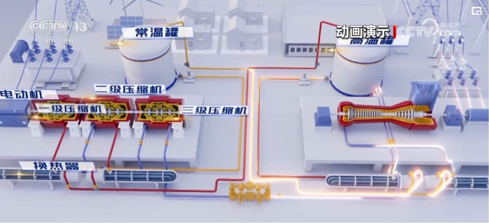 在江蘇常州的金壇鹽穴壓縮空氣國家試驗示范電站,這個電站可以把電能儲存在廢棄的地下鹽穴里。它在夜間用電負(fù)荷低的時候,用電帶動空氣壓縮機(jī)充電,過程好比給鹽穴這個“氣球”打氣,將1個標(biāo)準(zhǔn)大氣壓的空氣壓縮為140個標(biāo)準(zhǔn)大氣壓的高壓空氣。白天需要時,一鍵啟動釋放壓縮空氣,產(chǎn)生巨大的動能帶動發(fā)電機(jī)發(fā)電。