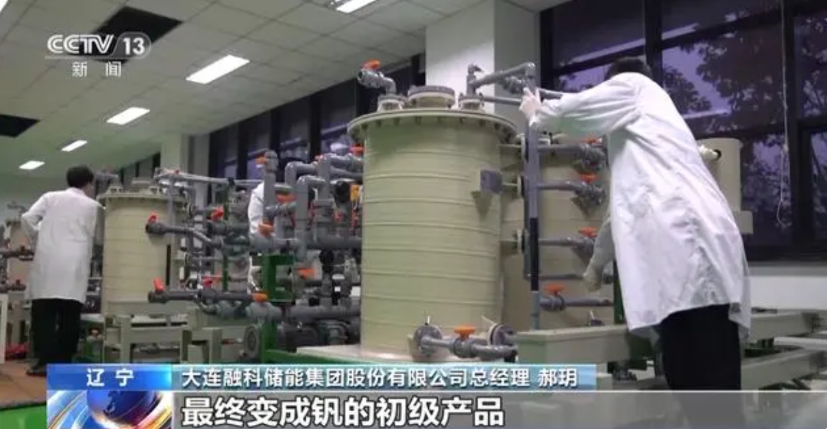大連融科儲能集團(tuán)股份有限公司總經(jīng)理 郝玥:我們生產(chǎn)釩電解液的原料的來源是釩鈦磁鐵礦,在煉鋼的過程當(dāng)中,釩會富集到鋼渣當(dāng)中,鋼渣再經(jīng)過處理,最終變成釩的初級產(chǎn)品,那么釩的初級產(chǎn)品進(jìn)入到我們化學(xué)和電化學(xué)的處理裝置當(dāng)中,最終變成釩的電解液的最終產(chǎn)品。