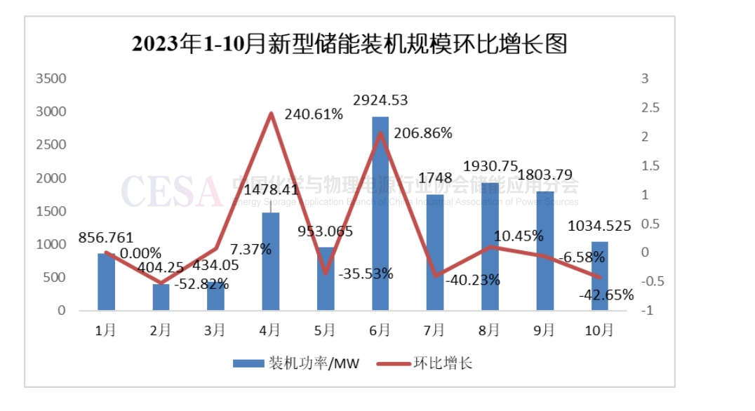 圖1 2023年10月新型儲能裝機規(guī)模環(huán)比增長圖