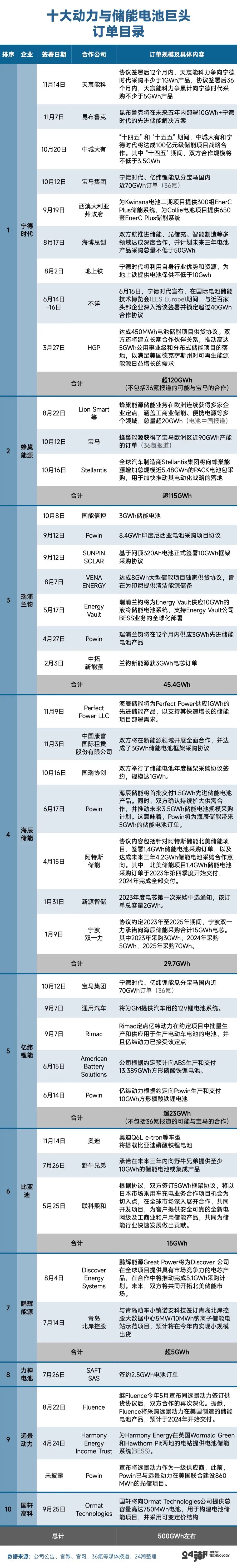 據(jù)「24潮團(tuán)隊(duì)」統(tǒng)計(jì),2023年至今十大動(dòng)力/儲(chǔ)能電池巨頭至少已簽署41個(gè)重大合約,總規(guī)模合計(jì)超500GWh,這甚至超過了2022年國內(nèi)動(dòng)力電池與儲(chǔ)能電池銷量之和。