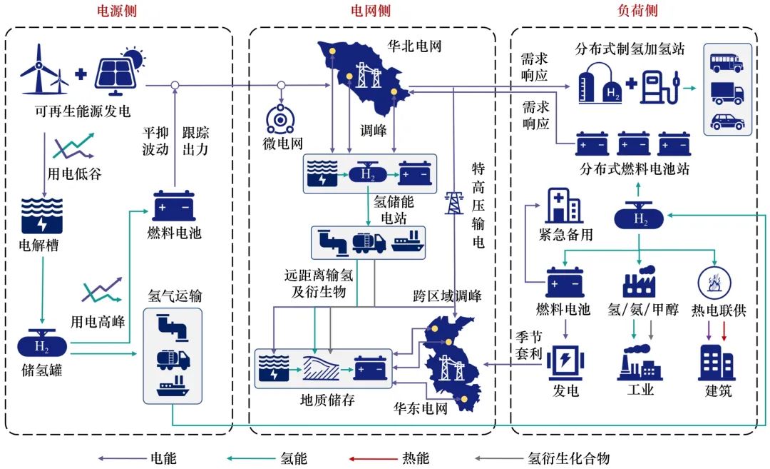 加快發(fā)展氫能產(chǎn)業(yè),是應(yīng)對(duì)實(shí)現(xiàn)“碳達(dá)峰、碳中和”目標(biāo)和保障國(guó)家能源安全的戰(zhàn)略選擇。氫儲(chǔ)能具有跨季節(jié)、跨區(qū)域和大規(guī)模存儲(chǔ)的優(yōu)勢(shì),在能量維度、時(shí)間維度和空間維度上具有突出優(yōu)勢(shì),在新型電力系統(tǒng)的“源網(wǎng)荷”各個(gè)環(huán)節(jié)均有很強(qiáng)的應(yīng)用價(jià)值,可在新型電力系統(tǒng)建設(shè)中發(fā)揮重要作用。