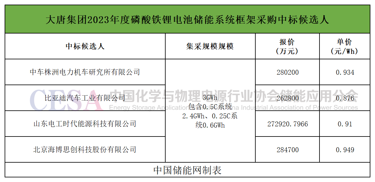 12月26日,大唐集團發(fā)布了2024年度磷酸鐵鋰電池儲能系統(tǒng)框架采購招標公告,預(yù)估采購總?cè)萘?GWh,包括0.5C儲能系統(tǒng)1GWh和0.25C儲能系統(tǒng)1GWh。