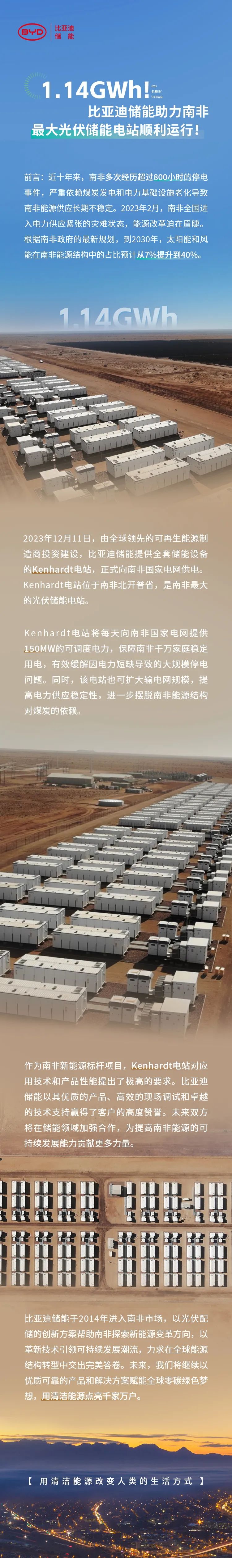 1.14 GWh!比亞迪儲(chǔ)能助力南非最大光伏儲(chǔ)能電站順利運(yùn)行