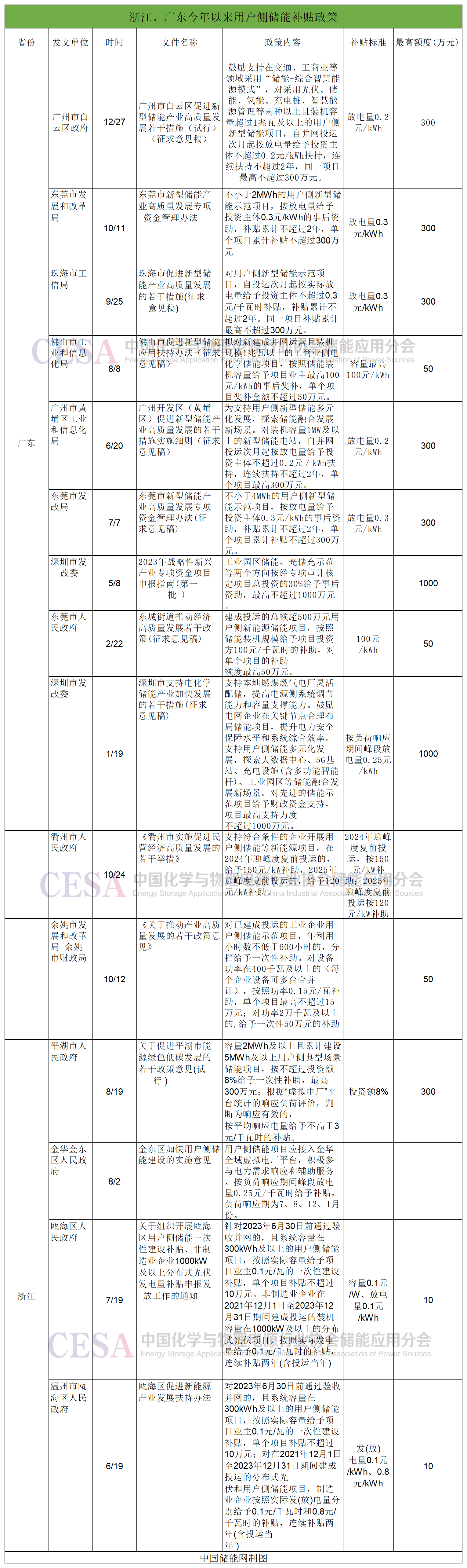 另外,今年以來(lái),廣東、浙江12個(gè)地方重點(diǎn)針對(duì)用戶(hù)側(cè)儲(chǔ)能出臺(tái)了15項(xiàng)補(bǔ)貼政策,其中,深圳市的政策補(bǔ)貼資金最高,為1000萬(wàn)元。