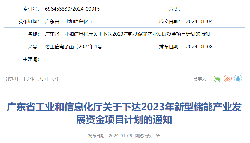 廣東省工業(yè)和信息化廳關(guān)于下達(dá)2023年新型儲能產(chǎn)業(yè)發(fā)展資金項(xiàng)目計(jì)劃的通知
