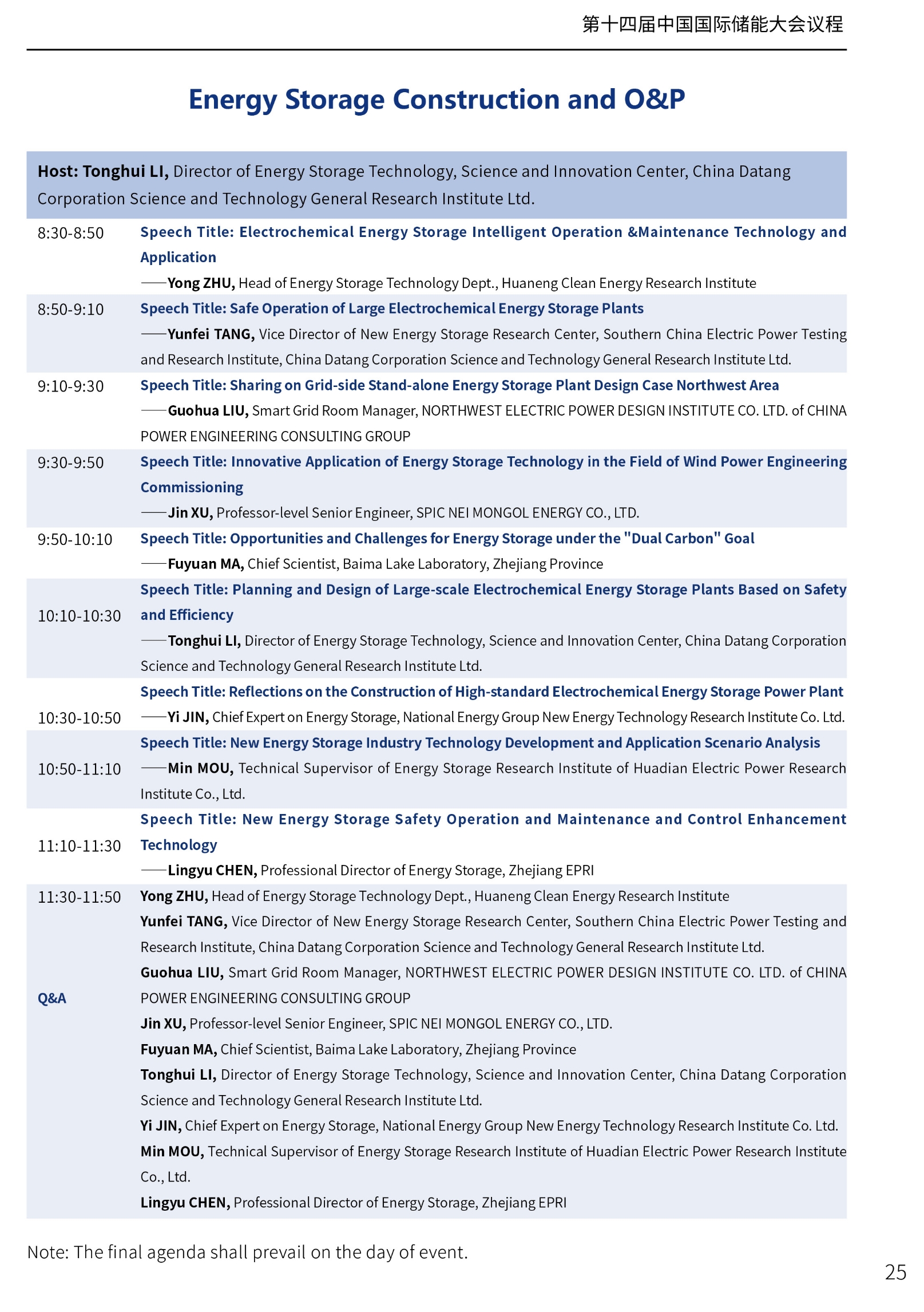 第十四屆中國國際儲能大會——儲能電站建設(shè)與運維專場議程發(fā)布