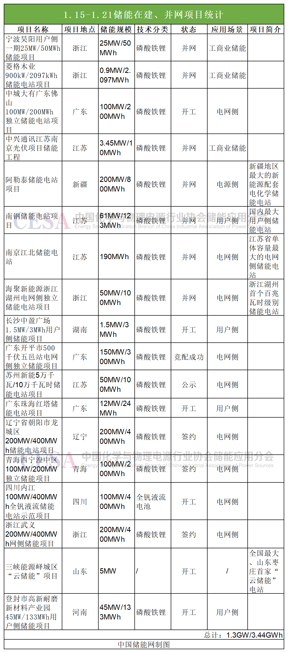本周部分簽約、開工、并網(wǎng)儲能項(xiàng)目:
