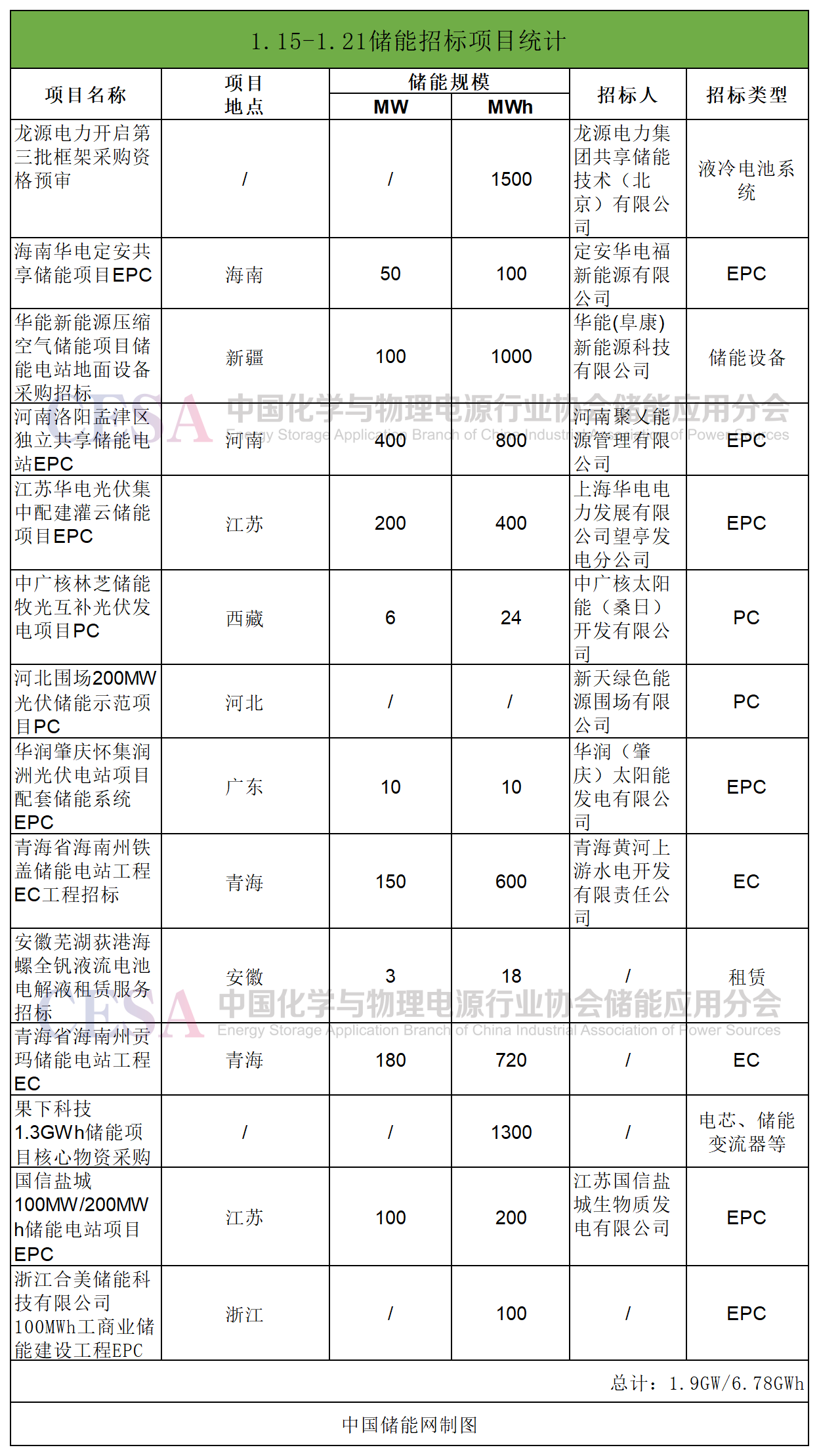 中國儲能網(wǎng)訊:2024年1月第三周儲能招標(biāo)市場依舊火爆,據(jù)中國儲能網(wǎng)不完全統(tǒng)計(jì),本周共計(jì)1.9GW/6.78GWh儲能項(xiàng)目開啟招標(biāo),主要以EPC為主,其中包括4個GWh級別的招標(biāo)項(xiàng)目,分別是: