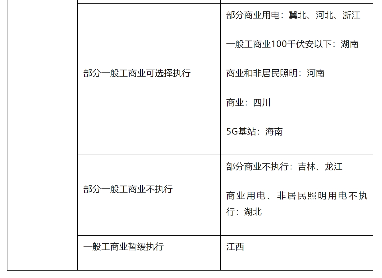 工商業(yè)分時電價執(zhí)行范圍更加清晰。各地規(guī)定工商業(yè)分時電價政策執(zhí)行范圍時,32個地區(qū)中有16個地區(qū)不區(qū)分大工業(yè)、一般工商業(yè),其中安徽、遼寧、蒙東和蒙西明確對用電容量在100千伏安及以上的工商業(yè)用電實施分時,貴州僅對執(zhí)行兩部制電價的工商業(yè)用戶實施分時。剩下16個大工業(yè)和一般工商業(yè)用戶區(qū)分執(zhí)行分時的地區(qū),除上海明確一般工商業(yè)用電全部執(zhí)行分時、江西暫緩執(zhí)行外,其他地區(qū)要求一般工商業(yè)用電部分執(zhí)行或選擇執(zhí)行。此外,除北京、天津、冀北、河北、山西與江蘇等少數(shù)地區(qū)外,絕大多數(shù)地區(qū)不單獨規(guī)定執(zhí)行尖峰、深谷電價的用戶范圍。