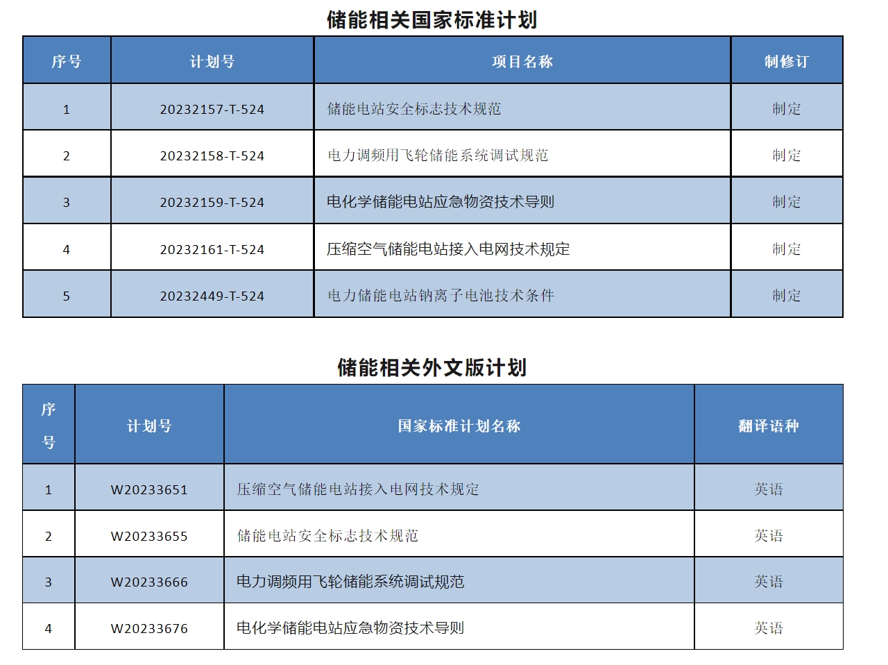 其中,由中國電力企業(yè)聯(lián)合會主管,全國電力儲能標(biāo)準(zhǔn)化技術(shù)委員會歸口的儲能相關(guān)國家標(biāo)準(zhǔn)計劃5項,外文版計劃4項。摘錄如下:
