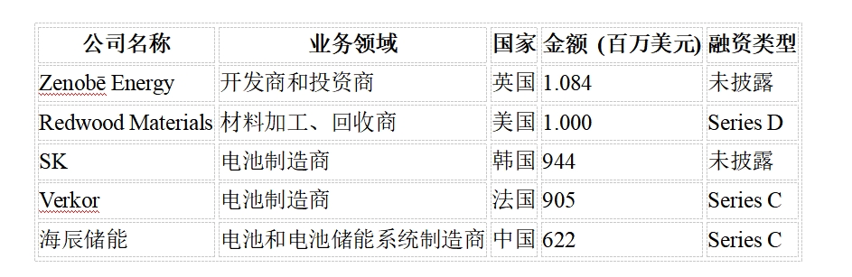 電池回收和材料專業(yè)開發(fā)商Redwood Materials公司獲得10億美元的D輪融資將其排在第二位,韓國SK On公司融資9.44億美元。而法國電池制造商Verkor公司成為南歐主要電池生產(chǎn)商,以9.05億美元的融資排名第四。
