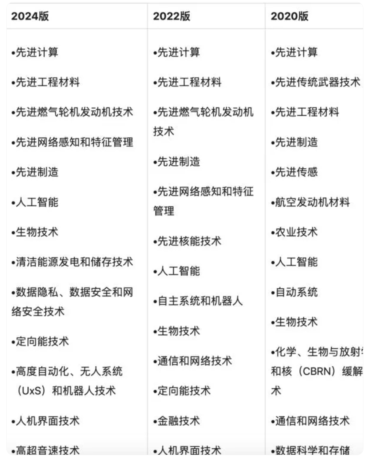 除此之外,總體來看,2024版美國關(guān)鍵和新興技術(shù)清單包括了先進(jìn)計算、先進(jìn)制造、人工智能、半導(dǎo)體與微電子等共18類技術(shù)領(lǐng)域。