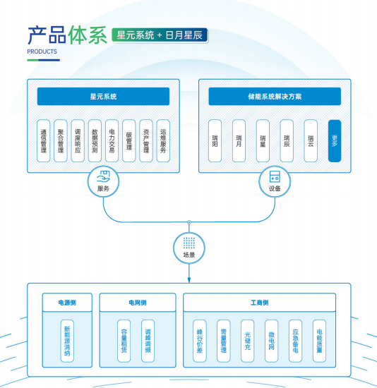 目前,國(guó)瑞協(xié)創(chuàng)已形成“星元系統(tǒng)+日月星辰=三大領(lǐng)域“的業(yè)務(wù)體系。以儲(chǔ)能系統(tǒng)集成解決方案為基座,國(guó)瑞協(xié)創(chuàng)布局智慧綠能運(yùn)維解決方案及全生命周期服務(wù)管理,軟件、硬件及服務(wù)多維發(fā)力,產(chǎn)品覆蓋了發(fā)電側(cè)、電網(wǎng)側(cè)及工商側(cè)儲(chǔ)能三大領(lǐng)域,涉及虛擬電廠、碳資產(chǎn)管理、微電網(wǎng)、峰谷價(jià)差、應(yīng)急備電、移動(dòng)儲(chǔ)能、新能源消納、調(diào)峰調(diào)頻、獨(dú)立儲(chǔ)能等豐富的應(yīng)用場(chǎng)景,助力用戶從能源消費(fèi)者走向能源消費(fèi)者+生產(chǎn)者+使能者。