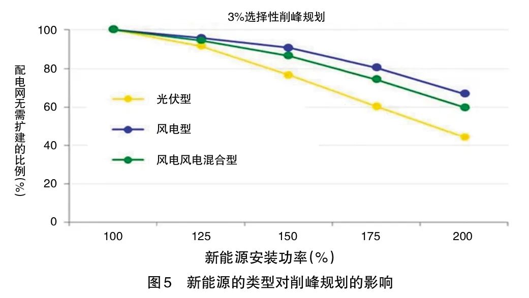 削峰規(guī)劃原則的核心在于利用現(xiàn)有負荷對新能源的峰值進行自動平滑,因此,該原則特別適用于裝備了大量光伏發(fā)電設(shè)施的分布式新能源的配電網(wǎng),如光伏設(shè)施眾多的農(nóng)村電網(wǎng)。在那些能夠同時推廣光伏發(fā)電和熱泵技術(shù)的農(nóng)村地區(qū),這一規(guī)劃原則由于就地負荷的重要性,能夠發(fā)揮更加顯著的效果。