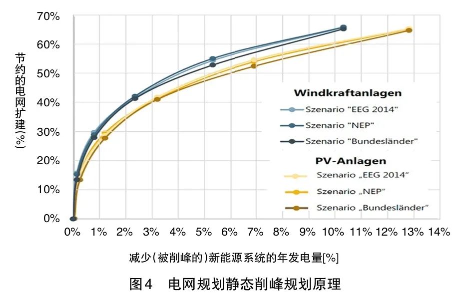 當光伏發(fā)電功率超出削峰規(guī)劃設(shè)定的物理范圍時,便需要擴大電網(wǎng)容量。在電網(wǎng)擴建方面,德國遵循一項基本原則:優(yōu)先優(yōu)化現(xiàn)有電網(wǎng)運行,其次加強電網(wǎng)設(shè)施,最后考慮進行電網(wǎng)擴建。
