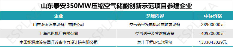 2023年9月,山東濟(jì)南發(fā)電設(shè)備廠有限公司以28900000元的投標(biāo)報(bào)價,中標(biāo)泰安項(xiàng)目“空氣透平發(fā)電機(jī)及其附屬設(shè)備采購”項(xiàng)目。