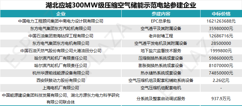 湖北應(yīng)城300MW壓縮空氣儲能電站示范項(xiàng)目投資單位為中能建數(shù)字科技集團(tuán)有限公司和國網(wǎng)湖北綜合能源服務(wù)有限公司,建設(shè)單位為湖北楚韻儲能科技有限責(zé)任公司,總承包單位為中南院。