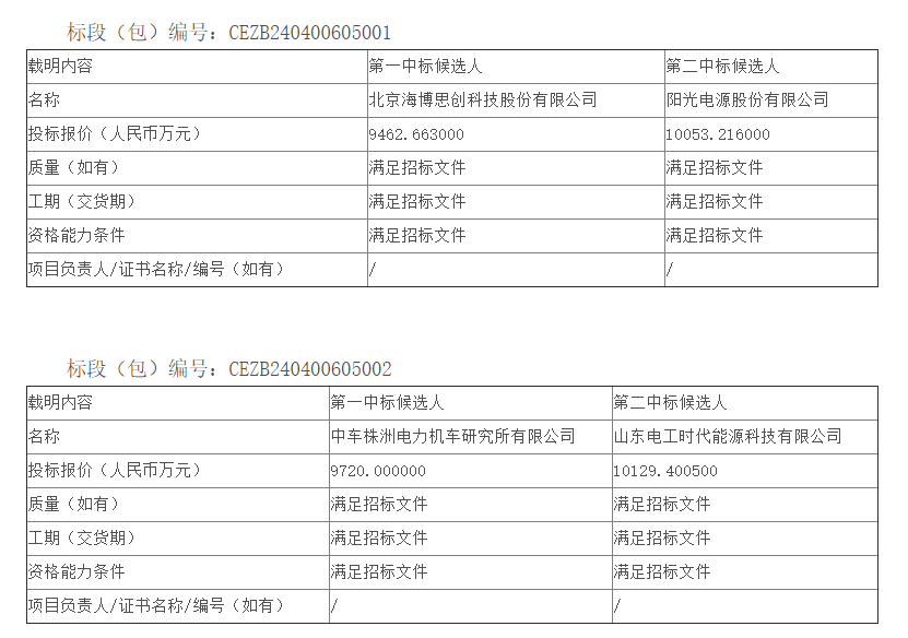 標(biāo)段二:容量75MW/150MWh,中標(biāo)候選人情況為: