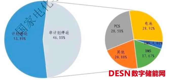 第一個這個是2022年的全年和2023年的上半年,國內(nèi)的電化學(xué)儲能站的故障分布度,2023年下半年的數(shù)據(jù)還沒有出來,我們把數(shù)據(jù)進(jìn)行了歸一化處理,我們按照每一百兆瓦時這個數(shù)據(jù)進(jìn)行計算,電化學(xué)儲能站大家可以看出來,在新的這段時間內(nèi),它的單位能量停機數(shù)增加了68%,它的電池故障的比例從9%上漲到了28.92%,增長了221%,已經(jīng)排到第一的位置了。
