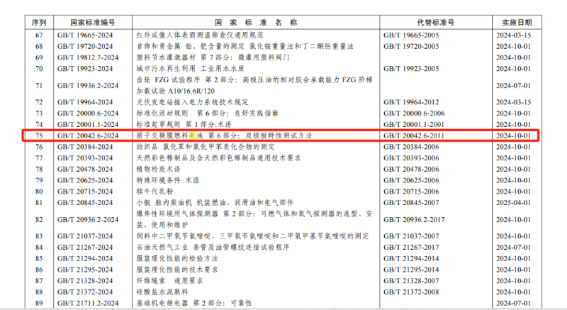 GB/T 20042.6-2024《質(zhì)子交換膜燃料電池 第6部分:雙極板特性測(cè)試方法》2024年10月1日實(shí)施