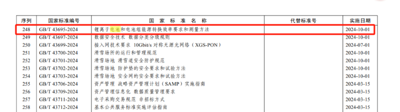 GB/T 43695-2024《鋰離子電池和電池組能源轉(zhuǎn)換效率要求和測(cè)量方法》2024年10月1日實(shí)施