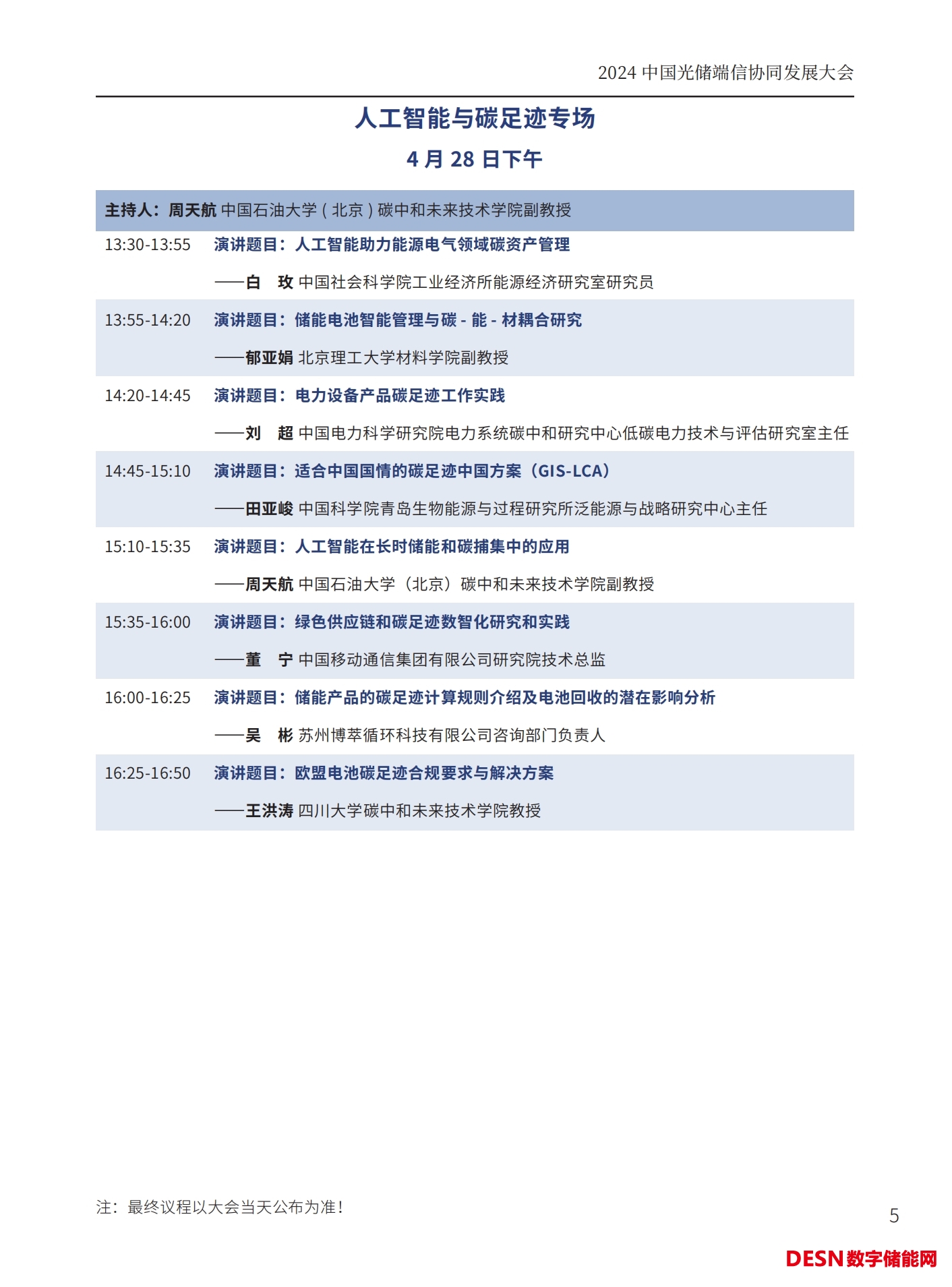 本屆大會(huì)將安排:大會(huì)開(kāi)幕式暨碳達(dá)峰高峰論壇、工商業(yè)儲(chǔ)能與車(chē)網(wǎng)互聯(lián)專場(chǎng)、光儲(chǔ)氫協(xié)同發(fā)展專場(chǎng)、儲(chǔ)能系統(tǒng)集成與智能安全預(yù)警系統(tǒng)專場(chǎng)、人工智能與碳足跡專場(chǎng)等五個(gè)專場(chǎng)論壇。