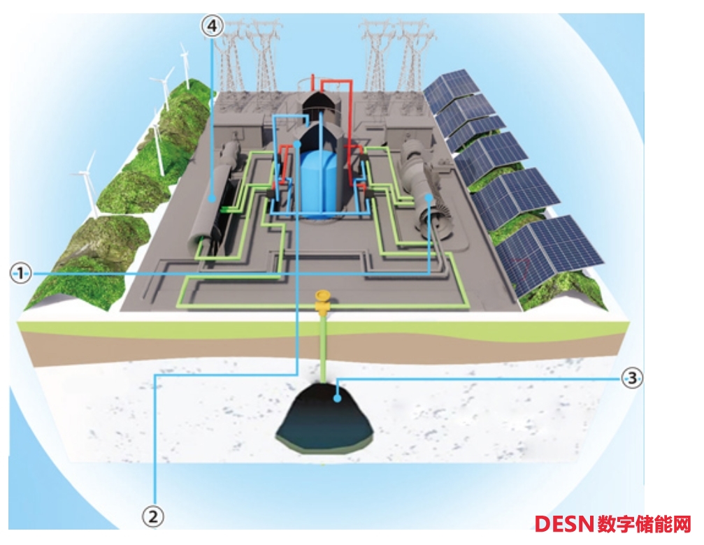 作為新型儲能技術(shù)的一種,壓縮空氣儲能指在電網(wǎng)負(fù)荷低谷期利用電能將空氣高壓密封在報廢礦井、過期油氣井等地點,并在電網(wǎng)負(fù)荷高峰期釋放高壓空氣推動汽輪機發(fā)電的儲能方式。以中儲國能(北京)技術(shù)有限公司投資建設(shè)的肥城300兆瓦鹽穴壓縮空氣儲能國家示范項目為例,在用電低谷時,儲能系統(tǒng)利用電能驅(qū)動電動機帶動壓縮機,將空氣壓縮并儲存在地下鹽穴中,這個過程中產(chǎn)生的壓縮熱被儲存在球罐中;在用電高峰時,則釋放鹽穴內(nèi)的高壓空氣,經(jīng)儲存的壓縮熱預(yù)熱升溫后,驅(qū)動膨脹機帶動發(fā)電機進(jìn)行發(fā)電,再把電力送到電網(wǎng),配合電網(wǎng)進(jìn)行調(diào)峰。