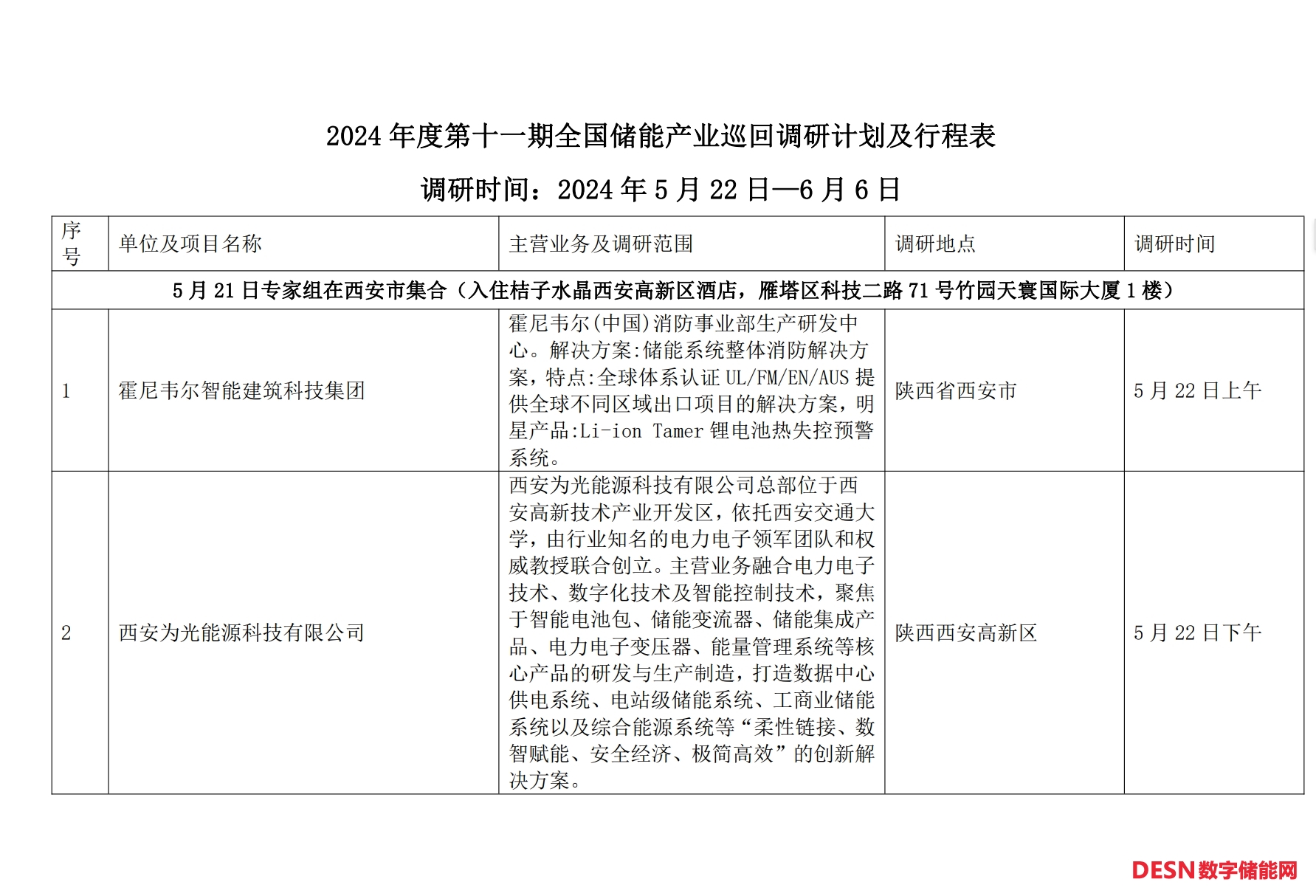 為進一步了解當前國內(nèi)儲能產(chǎn)業(yè)的項目運行狀態(tài)、企業(yè)生產(chǎn)經(jīng)營現(xiàn)狀、上下游供應鏈協(xié)同發(fā)展情況、招標及系統(tǒng)成本、雙碳目標下的儲能產(chǎn)業(yè)機遇與挑戰(zhàn)、項目規(guī)劃及投融資現(xiàn)狀、標準建設(shè)、商業(yè)生態(tài)、政策機制等方面實際訴求,并向行業(yè)主管部門提出合理化建議。中國化學與物理電源行業(yè)協(xié)會儲能應用分會與中國儲能網(wǎng)決定將于2024年5月22—6月7日組織開展第十一期全國儲能產(chǎn)業(yè)巡回調(diào)研工作,調(diào)研組將在陜西、山西、安徽、江蘇、浙江、上海、廣東、湖南、湖北等9個省市開展深入調(diào)研,預計實地走訪26家單位。