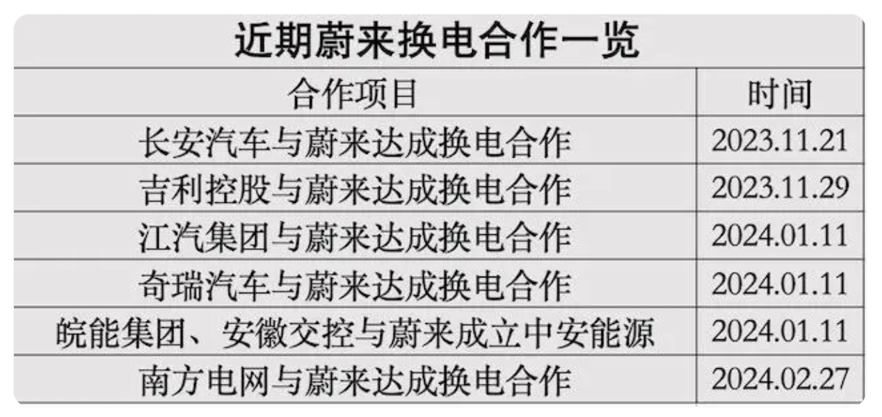 去年下半年以來(lái),蔚來(lái)就換電體系宣布了和多家車(chē)企、電力單位等的合作。過(guò)去數(shù)年中蔚來(lái)建立起的龐大補(bǔ)能體系,被認(rèn)為是上述合作的重要基礎(chǔ)。