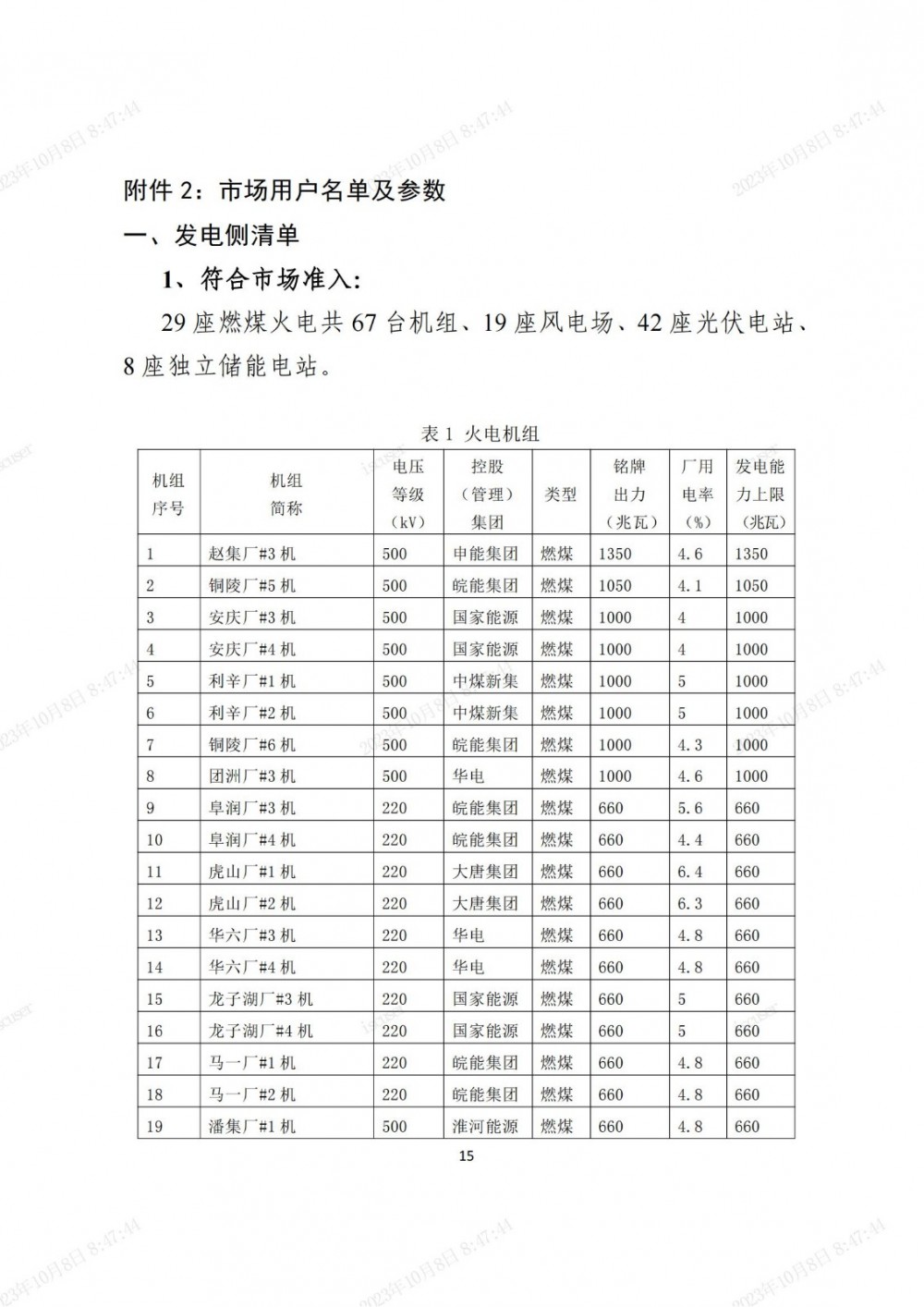 中國儲能網(wǎng)訊:日前,安徽省電力交易中心發(fā)布了《安徽電力現(xiàn)貨市場2023年第二輪結(jié)算試運(yùn)行工作方案(整周)》。方案明確,8座獨(dú)立儲能電站符合市場準(zhǔn)入,儲能電站規(guī)模共計(jì)766MW。其中規(guī)模最大的是由三峽新能源投建的新峽儲能電站,規(guī)模300MW。8個儲能電站共涉及7家業(yè)主單位,分別是陽光電源、上海電氣、國家電投、皖能集團(tuán)、信義、三峽集團(tuán)、中廣核。