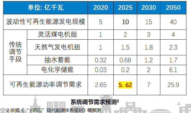 新型電力系統(tǒng)的靈活性調(diào)節(jié)資源容量緊缺。陳宋宋指出,截至2023年5月,我國風(fēng)電、光伏裝機(jī)達(dá)到8.3億千瓦,預(yù)計(jì)全年裝機(jī)增加2億千瓦左右。大規(guī)模波動(dòng)性可再生能源接入后,傳統(tǒng)“源隨荷動(dòng)” 的電網(wǎng)運(yùn)行調(diào)節(jié)方式受到挑戰(zhàn),靈活性調(diào)節(jié)資源容量不足。按2025年風(fēng)、光裝機(jī)10億千瓦測算,將產(chǎn)生5.62億千瓦的調(diào)節(jié)需求。