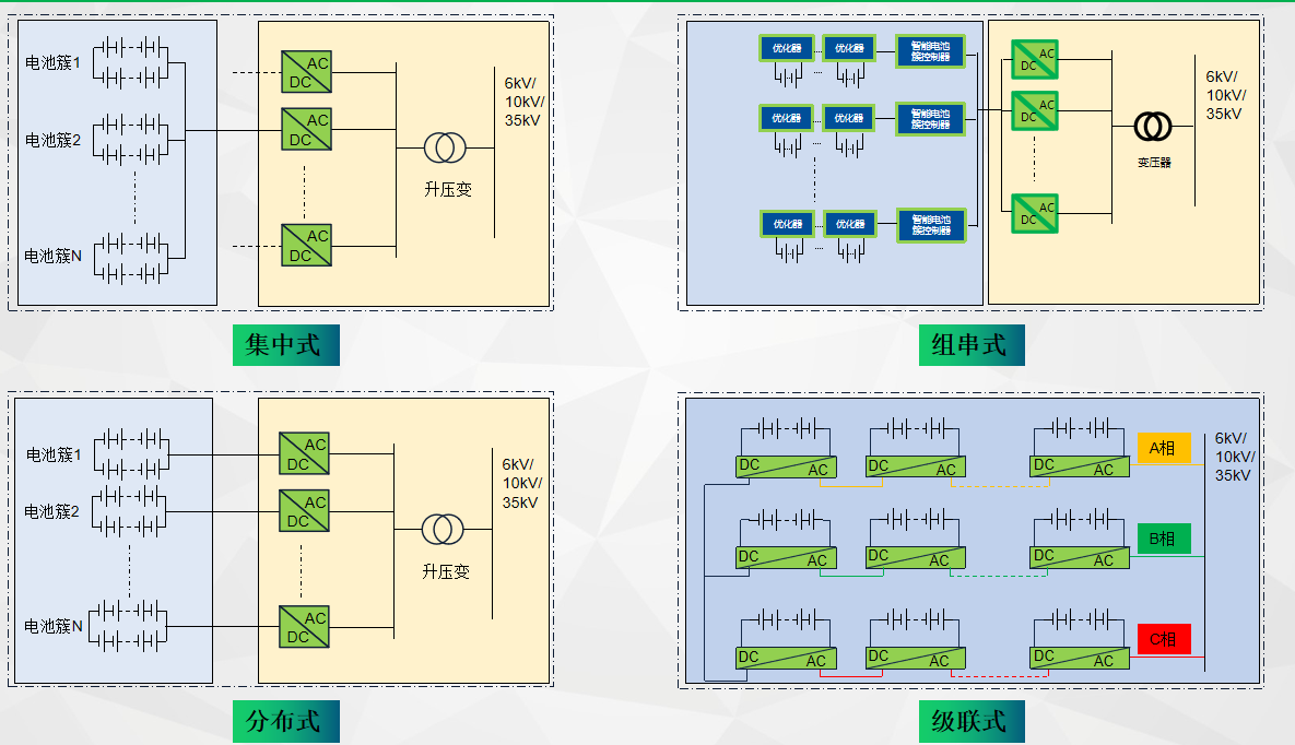 新風光電子科技股份有限公司儲能產(chǎn)品總監(jiān)石廣保在《高安全、高經(jīng)濟儲能系統(tǒng)--新一代高壓級聯(lián)解決方案》的演講中提到,現(xiàn)有的儲能系統(tǒng)主要是集中式儲能系統(tǒng),這種設計簡潔且性價比較高,因此在儲能經(jīng)濟性或盈利不良的情況下,這種方案常被業(yè)主接受。然而,這種方案存在環(huán)流問題,且隨著行業(yè)內(nèi)電壓從直流電壓1000V轉變到1500V,電池容量的變化也成為了一個重要問題。