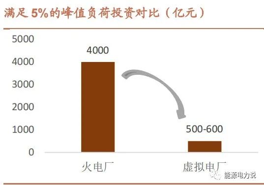 虛擬電廠削峰填谷成本優(yōu)勢(shì)明顯。根據(jù)國(guó)家電網(wǎng)測(cè)算,通過(guò)火電廠實(shí)現(xiàn)電力系統(tǒng)削峰填谷,滿足5%的峰值負(fù)荷需要投資4000億;而通過(guò)虛擬電廠,在建設(shè)、運(yùn)營(yíng)、激勵(lì)等環(huán)節(jié)投資僅需500-600億元,虛擬電廠參與調(diào)峰成本優(yōu)勢(shì)明顯。