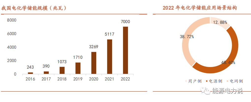 我國(guó)電化學(xué)儲(chǔ)能裝機(jī)規(guī)模從2016年243兆瓦增長(zhǎng)至2022年7000兆瓦,復(fù)合年均增長(zhǎng)率達(dá)75%,其中用戶側(cè)儲(chǔ)能占比12.9%,約900兆瓦。