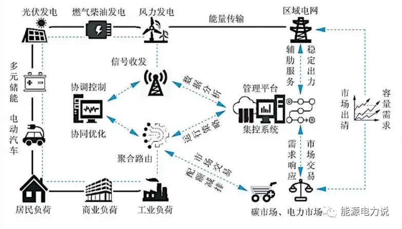 虛擬電廠(VPP)是一套智慧能源管理系統(tǒng),可將電網(wǎng)中分布式清潔能源、可控負(fù)荷和儲(chǔ)能系統(tǒng)等資源聚合起來(lái)作為一個(gè)“虛擬”的電廠參與電力系統(tǒng)運(yùn)行和電力市場(chǎng)交易。