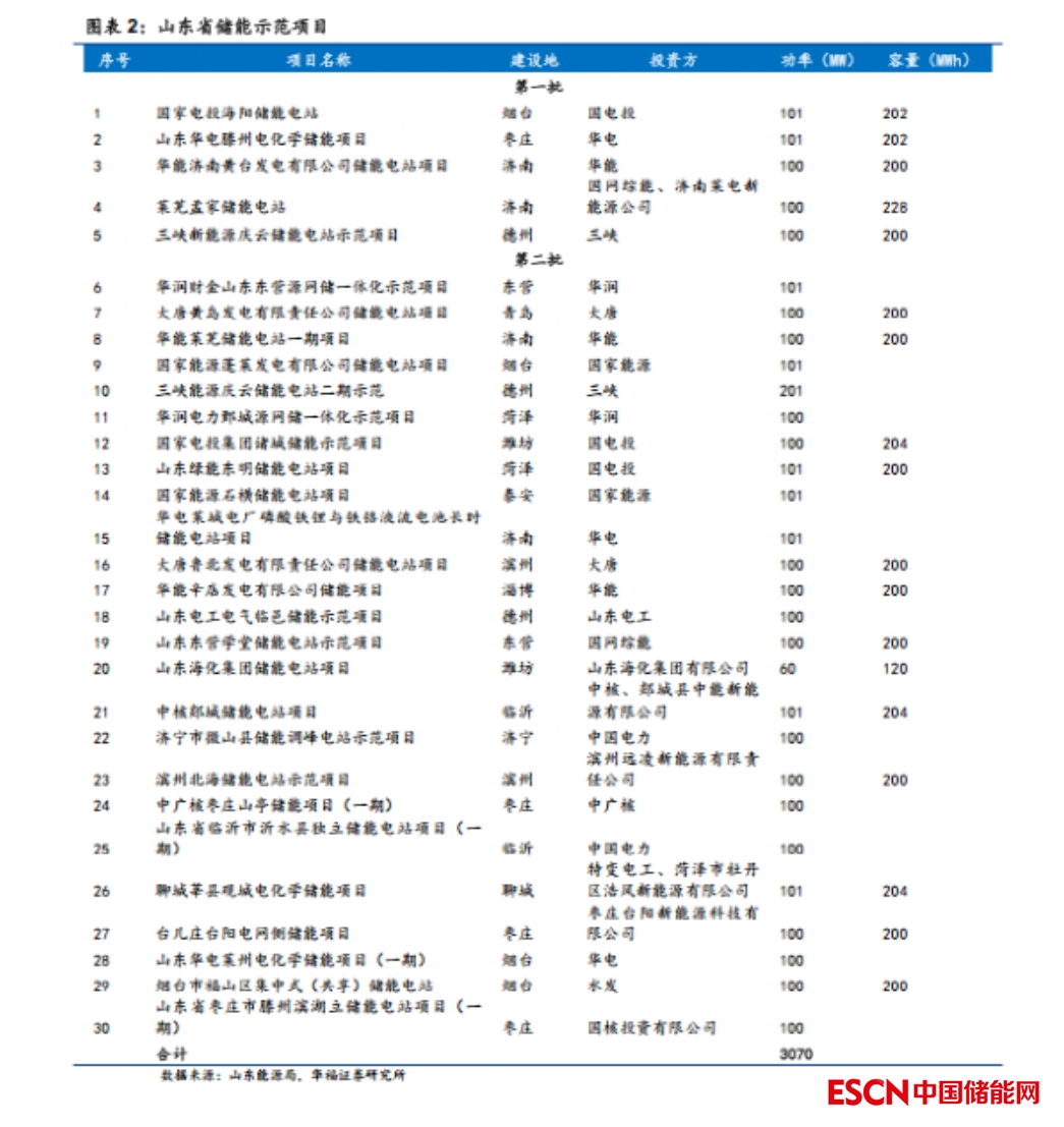 山東示范儲能項目已超 3GW,規(guī)劃十四五建成 5GW
