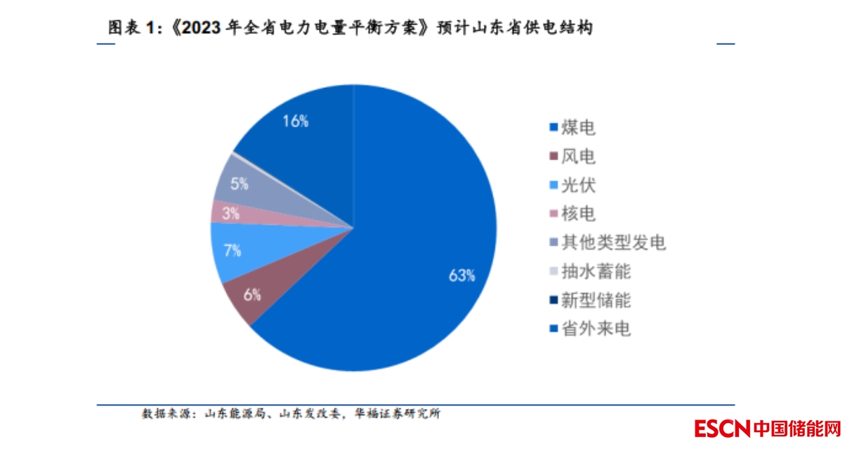 近日,山東省發(fā)改委、能源局印發(fā)《2023 年全省電力電量平衡方案》,方案表明, 預(yù)計省內(nèi)2023 年夏、冬季午高峰光伏發(fā)電有力支撐,電力供需總體平衡,晚高峰存在時段性電力供需缺口。預(yù)計 2023年全省全社會用電量 7900億千瓦時,增長 4.5%。其中,預(yù)計煤電/風(fēng)電/光伏/核電/其他類型發(fā)電/抽水蓄能/新型儲能/省外來電電量分別為4976/448/550/200/432/32/12/1250 億千瓦時。